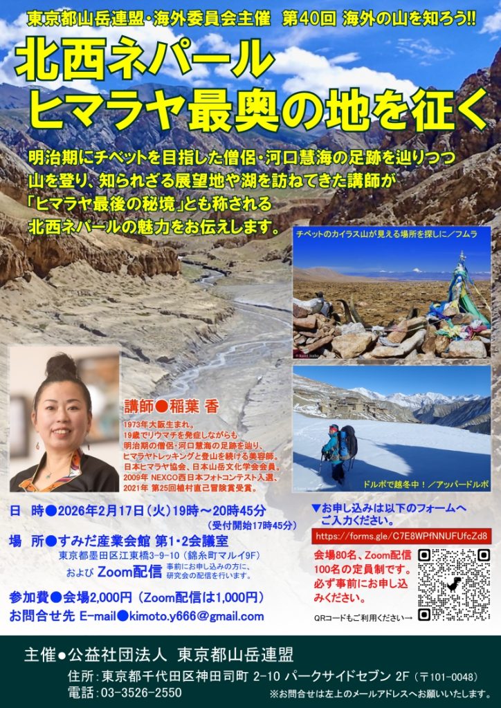 東京都山岳連盟 | 第40回「海外の山を知ろう!!」のご案内