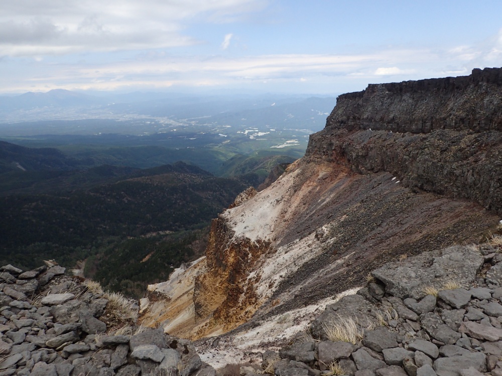 硫黄岳山荘が近づけば岩場は終わり、硫黄岳の爆裂火口を見てから赤岳鉱泉に下ります。